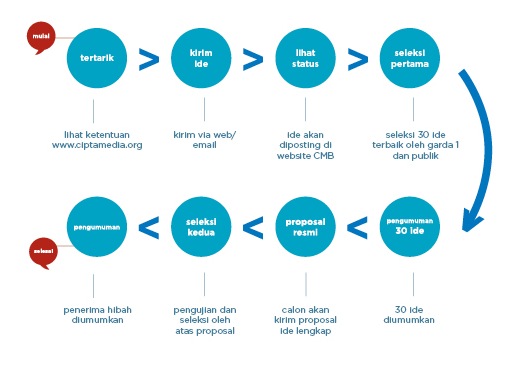 Silahkan masuk ke menu Aplikasi Hibah disini atau download aplikasi dalam format DOC / PDF. Kirimkan formulir yang telah diisi ke info@ciptamedia.org